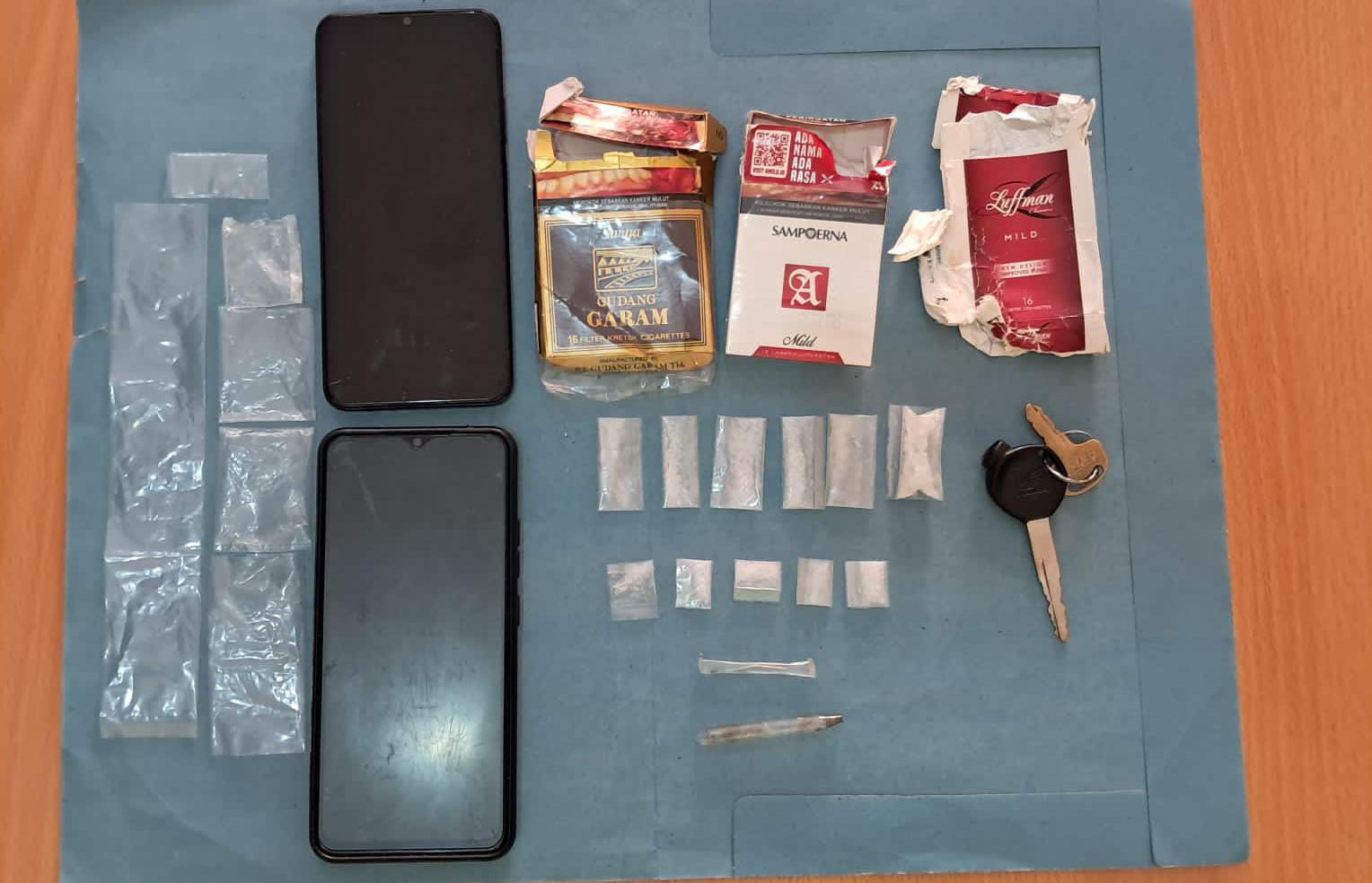 Dari tangan ASC dan AS, petugas menyita barang bukti Sabu sebanyak 1 paket sedang, sebuah HP Android, kaca pirex, jarum dalam pipet putih serta sebuah sepeda motor matik.