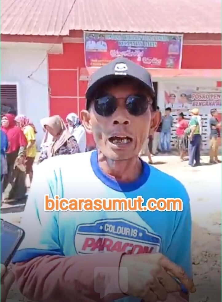 Gambar – Irwansyah Sidabutar warga desa Ujung Batu menyampaikan keterangannya kepada Wartawan didepan Kantor Kecamatan Barus saat melakukan aksi unjuk rasa bersama warga lainnya.