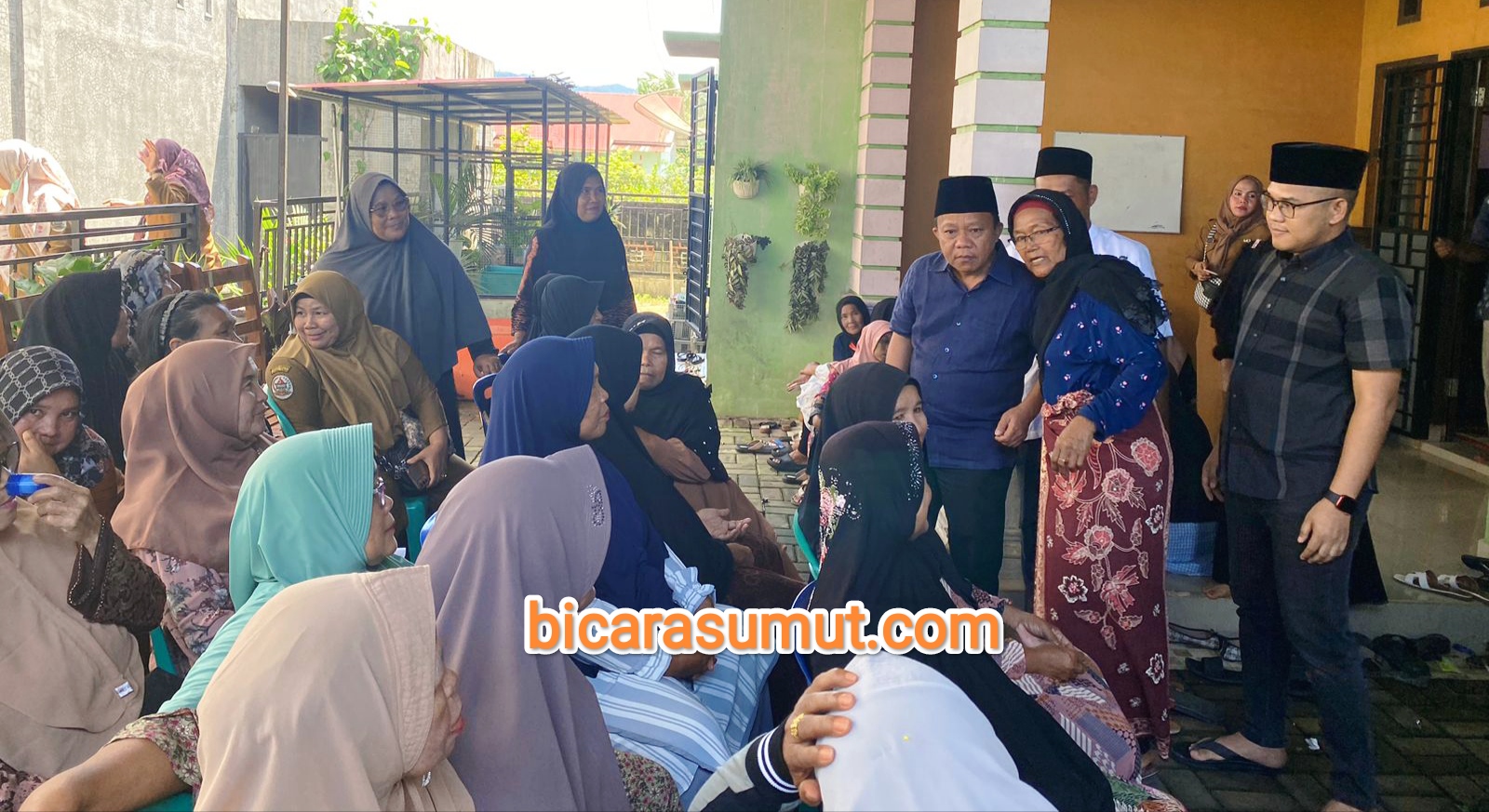 Darwin dan rombongan hadir di rumah duka disambut oleh keluarga almarhum serta masyarakat yang turut hadir melayat.
