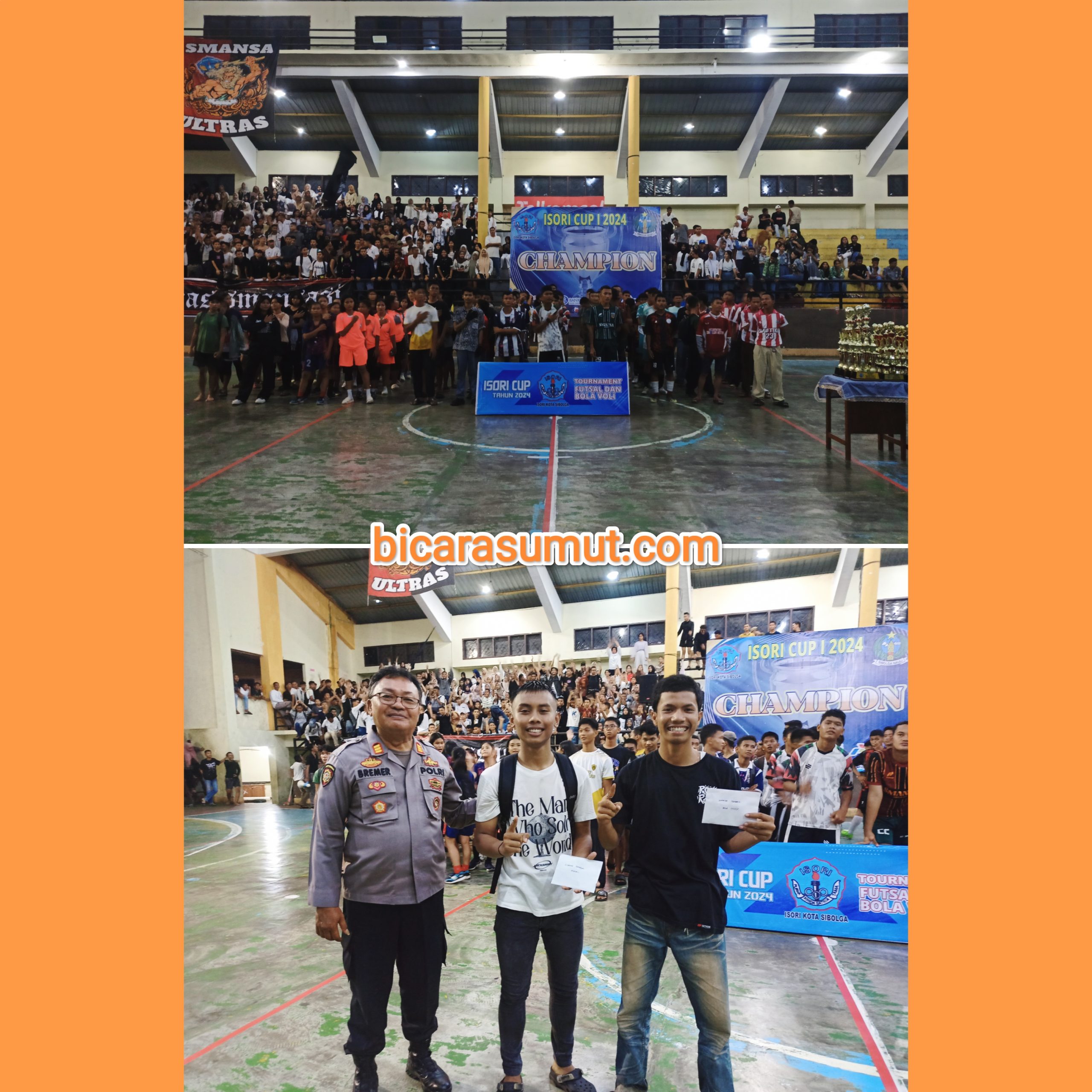 Gambar- Lokasi Turnamen Cup 1 ISORI di GOR Parombunan, Kelurahan Aek Parombunan, Kecamatan Sibolga Selatan, Kota Sibolga dan Pemberian Hadiah Suporter Terbaik Dari Ketua DPRD Sibolga Yang Diwakilkan Oleh Kapolsek Sibolga Selatan