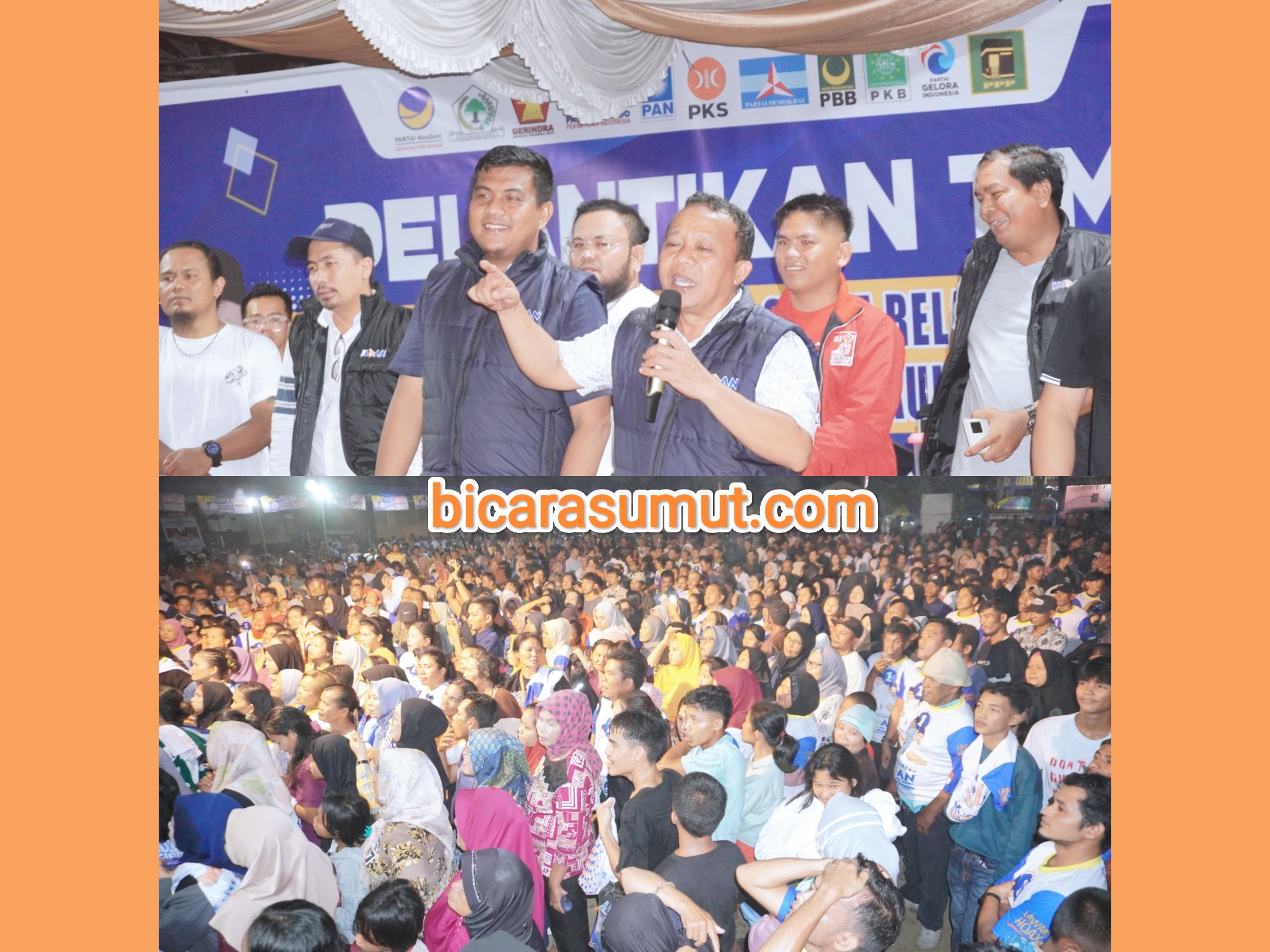 TAPTENG, bicarasumut.com | Malam ini, lapangan bola Mela II Kecamatan Tapian Nauli dibanjiri ribuan pendukung pasangan KEDAN (Kiyedi-Darwin), Senin (28/10/2024). Mereka menyerukan, putra daerah harus menjadi pemimpin di kampung halamannya.