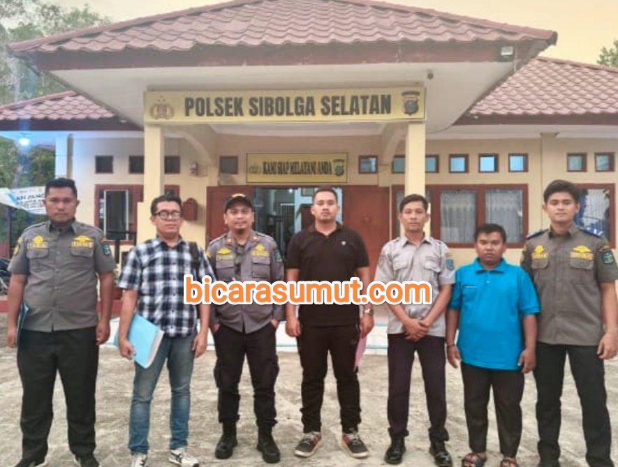 Gambar – Petugas Pelabuhan didampingi Kepala UPT Pelabuhan foto bersama usai membuat laporan di Mapolsek Sibolga Selatan.