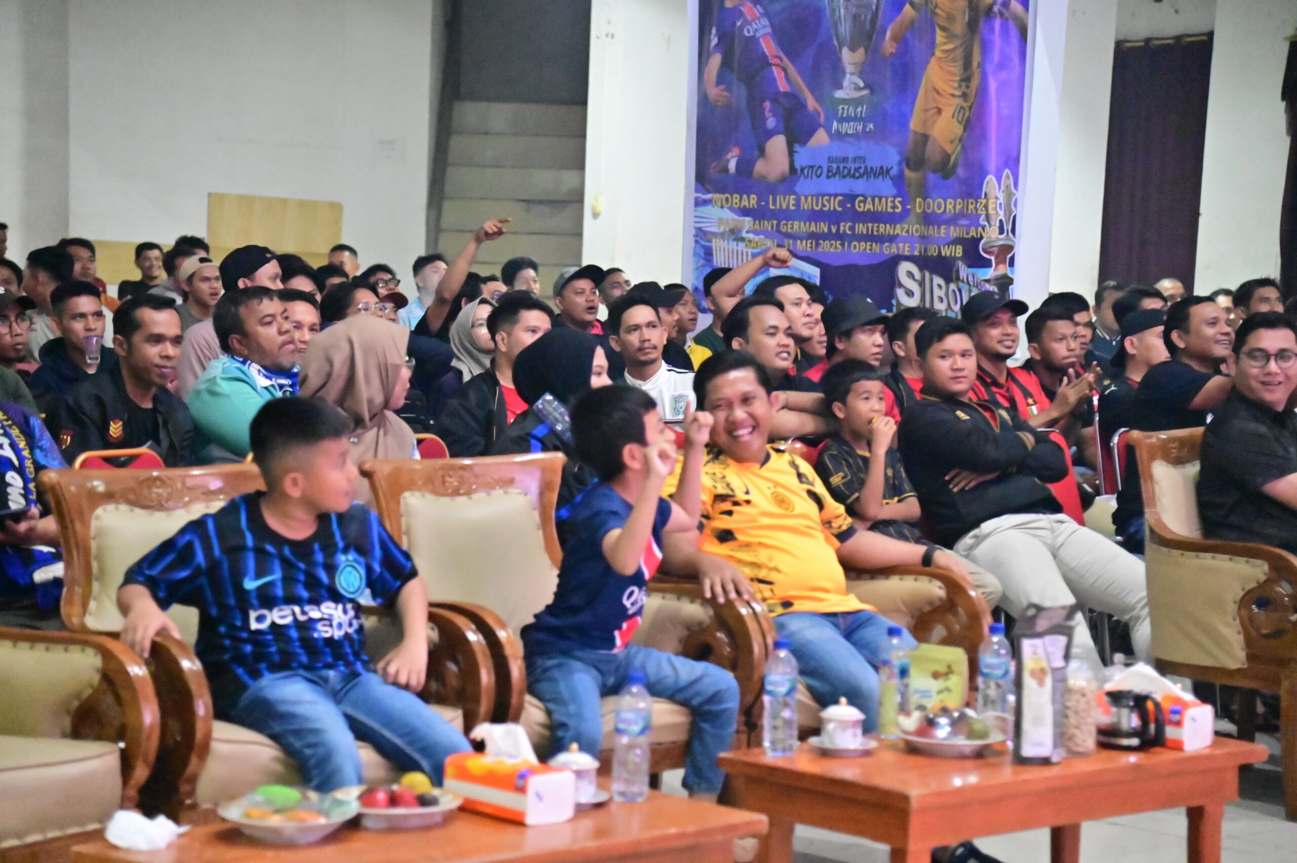 SIBOLGA, bicarasumut.com || Wali Kota Sibolga, Akhmad Syukri Nazry Penarik Nonton Bareng (Nobar) pertandingan Sepakbola Final Liga Champions antara Inter Milan (IM) VS Paris Saint Germain (PSG), di Gedung Nasional Sibolga, tepatnya didepan pendopo rumah dinas Wali Kota Sibolga, Minggu (1/6/25) dini hari.