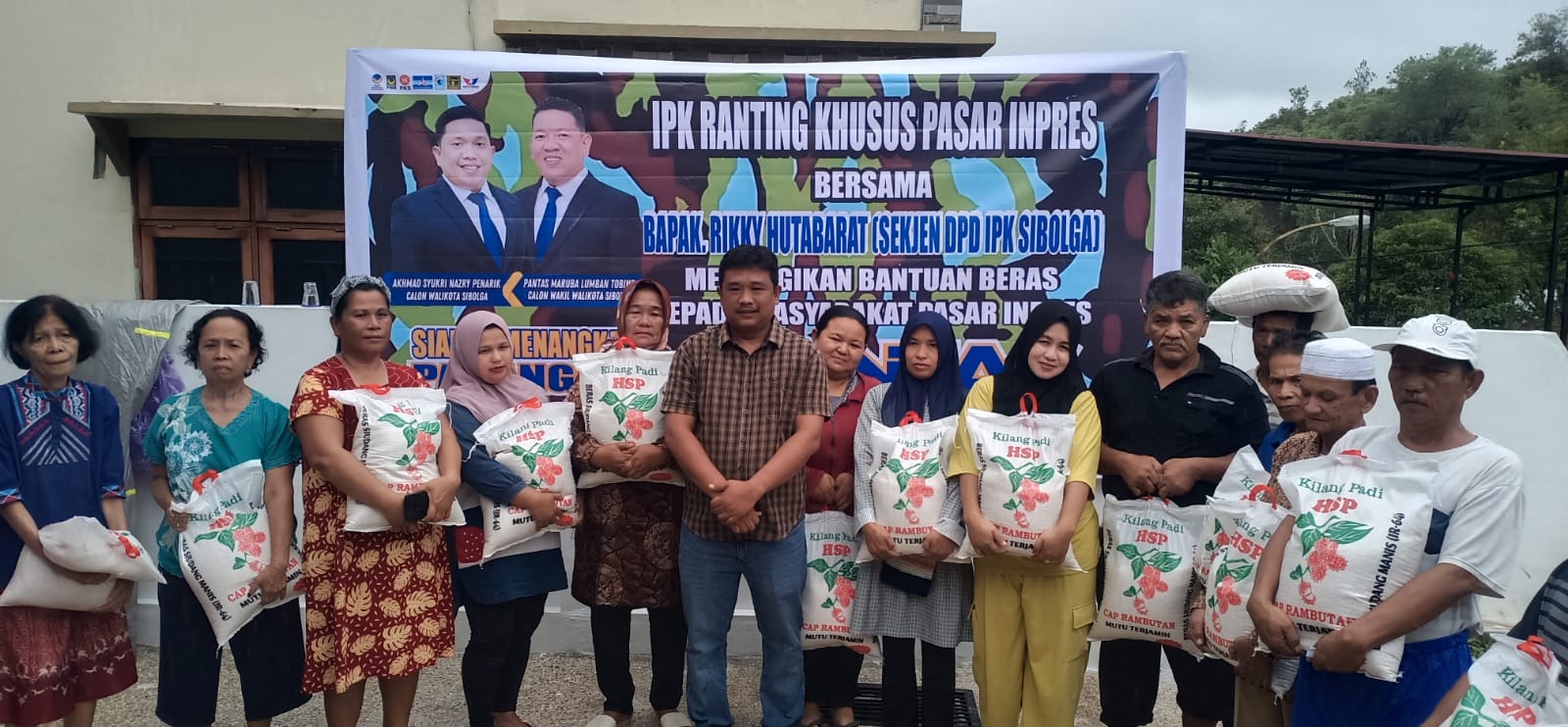 SIBOLGA, bicarasumut.com | Cuaca ekstrim melanda Kota Sibolga dan sekitarnya, pasangan calon Wali Kota dan Wakil Wali Kota Sibolga Akhmad Syukri Nazry Penarik – Pantas Maruba Lumban Tobing bersama Ikatan Pemuda Karya (IPK) Ranting Khusus Pasar Inpres membagikan beras kepada 150 Kepala Keluarga, warga Kelurahan Aek Habil dan Parombunan yang terdampak, Jumat (20/9/2024).