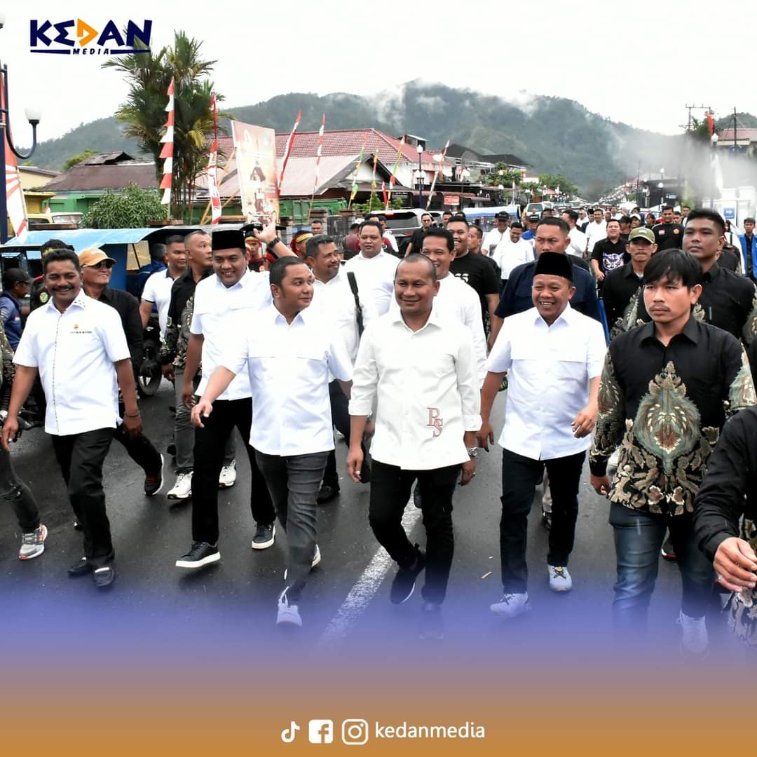 Gambar – Pasangan KEDAN didampingi Bakhtiar Ahmad Sibarani dan pendukung beramai-ramai berjalan kaki menuju Kantor KPU Tapteng