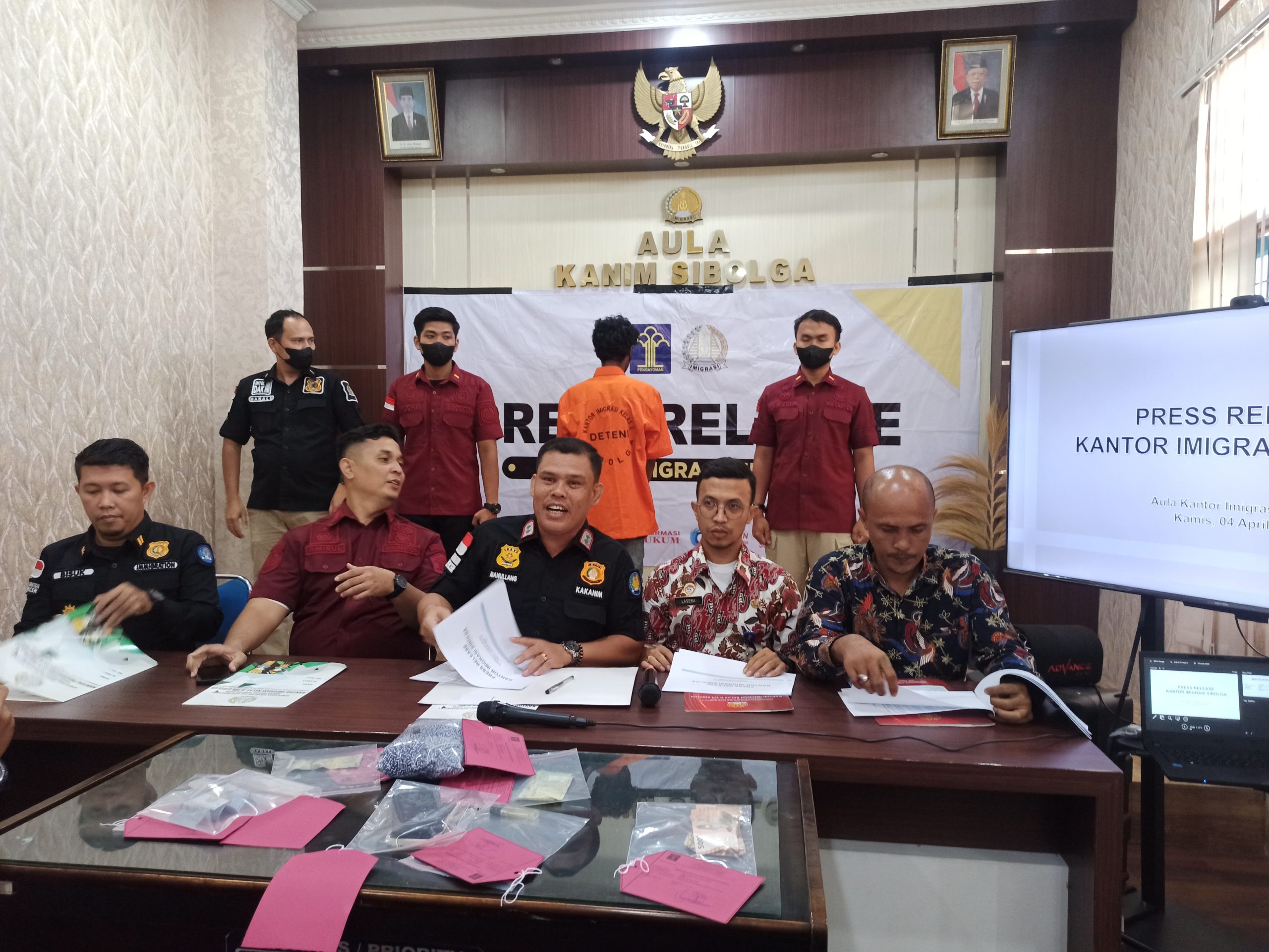 Gambar – Press Rilis Warga Asing dan Barang Bukti di Ruang Kantor Imigrasi Sibolga