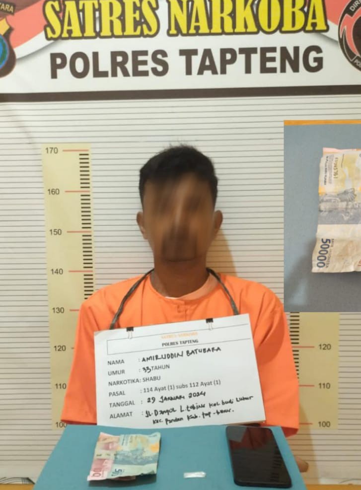 TAPTENG, bicarasumut.com | Seorang Nelayan di Kelurahan Budi Luhur, Kecamatan Pandan, Kabupaten Tapanuli Tengah, Sumatera Utara ditangkap Tim Opsnal Satuan Reserse Narkotika (Sat Resnarkoba) Polres Tapanuli Tengah, Senin, (29/1/2024) sekitar pukul 14.00 WIB.
