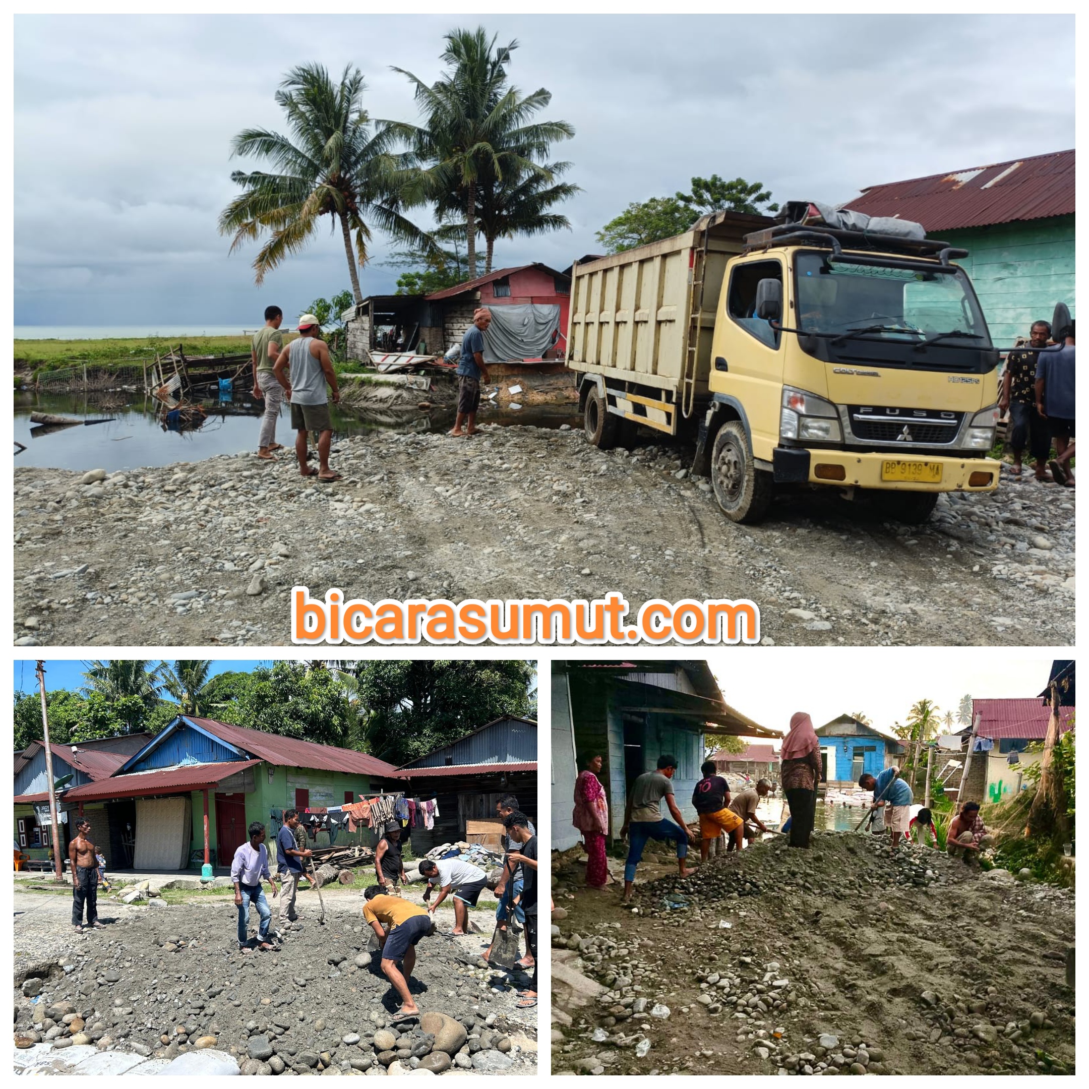 Gambar- Salah satu lokasi terdampak banjir bandang Barus, pinggiran sungai Aek Sirahar yang belum dipasangi karung goni, yakni desa Kampung Mudik. TAPTENG, bicarasumut.com || Dinas PU-PR Provinsi Suma...