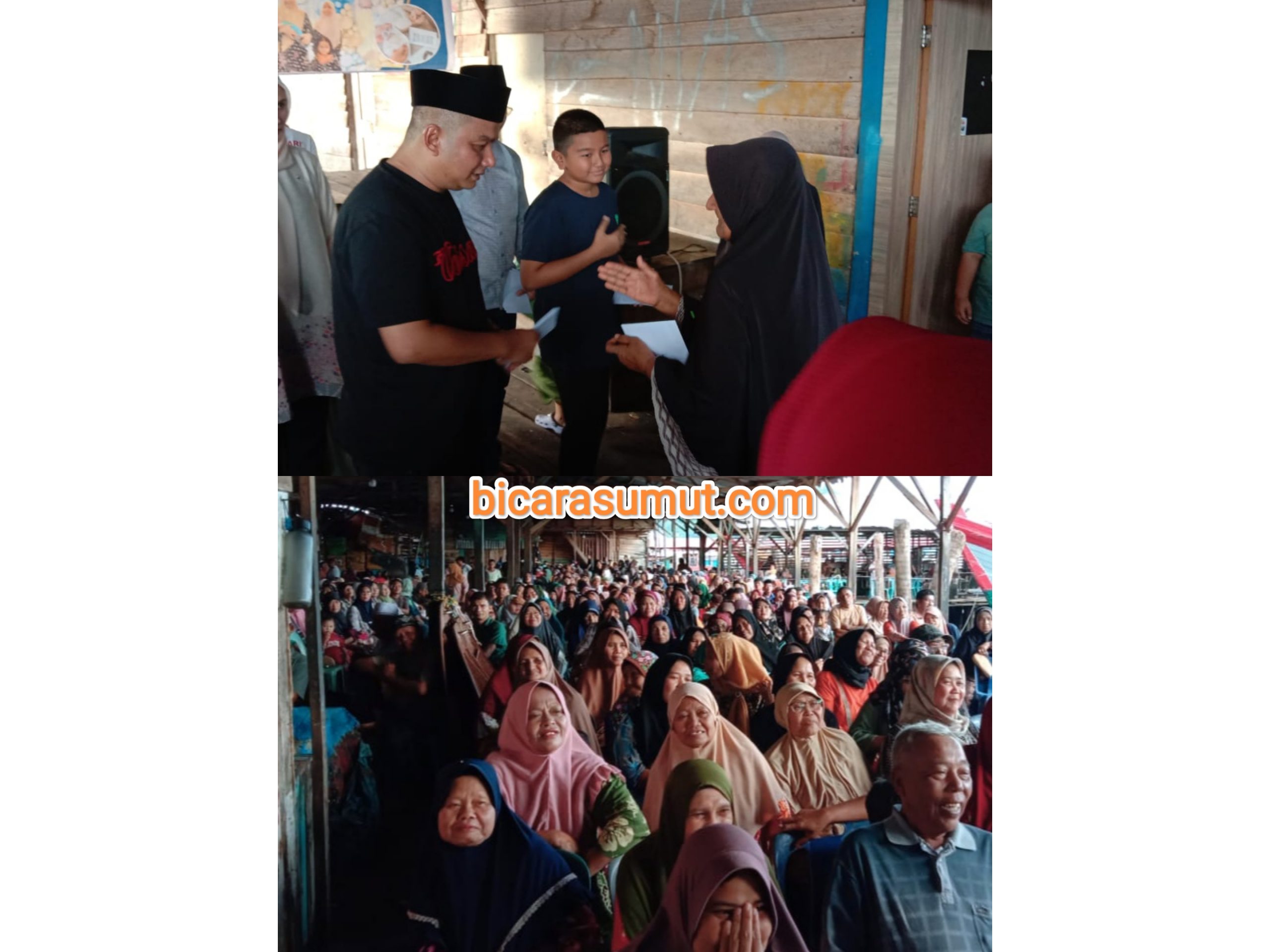 Gambar- Bakhtiar Ahmad Sibarani saat membagikan Zakat kepada warga yang berjumlah 1000 an orang yang hadir pada acara tersebut. SIBOLGA, bicarasumut.com | Bakhtiar Ahmad Sibarani pengusaha tangkahan A...
