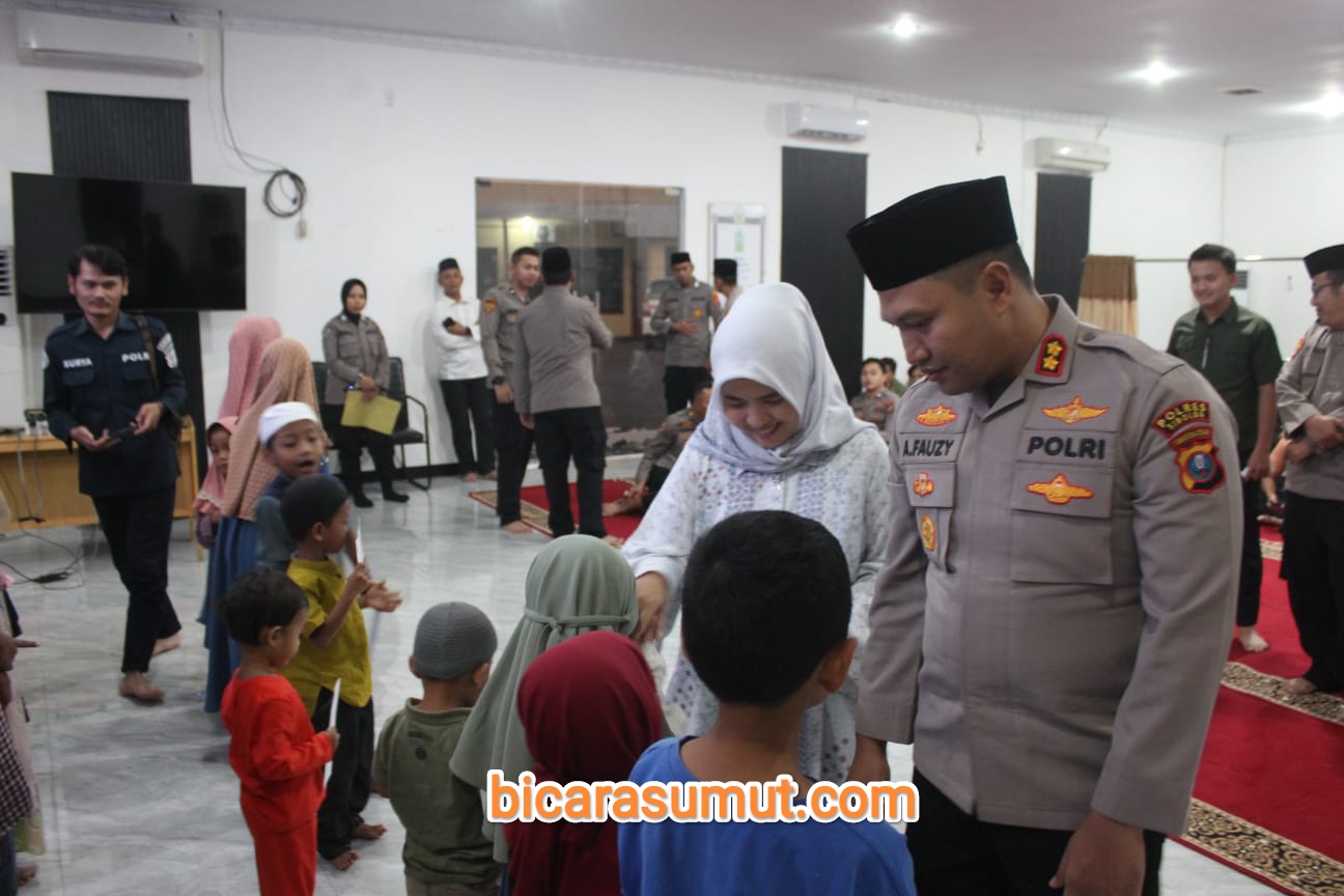Gambar- Kapolres Sibolga dan Ketua Bhayangkari Cabang Sibolga saat berbagi dengan anak yatim-piatu. SIBOLGA, bicarasumut.com | Polres Sibolga bersama Bhayangkari Cabang Sibolga menggelar kegiatan buka...