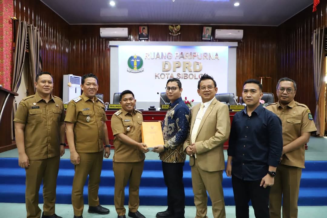 Gambar – Wali Kota Sibolga Jamaluddin Pohan menyerahkan 5 Rancangan Peraturan Daerah (Ranperda) yang pimpin oleh Wakil Ketua DPRD Sibolga Jamil Zeb Tumori, didampingi pimpinan DPRD Sibolga lainn...