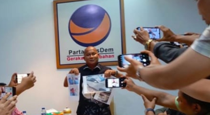 Gambar – Rahmansyah Sibarani saat menunjukkan bukti foto kendaraan yang rusak akibat lemparan batu massa aksi. MEDAN, bicarasumut.com || Ketua Fraksi Partai NasDem DPRD Sumatera Utara, Rahmansya...