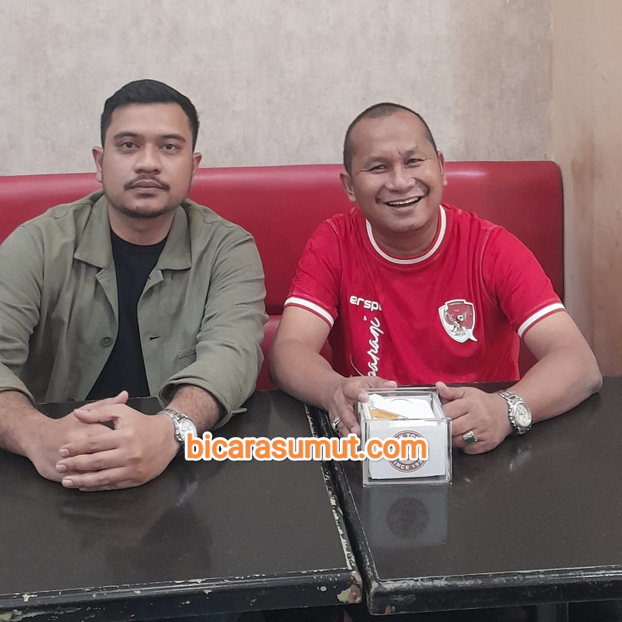 Gambar – Rahmansyah Sibarani (kanan) didampingi kuasa hukumnya (kiri) saat melakukan konferensi pers. MEDAN, bicarasumut.com || Anggota DPRD Provinsi Sumatera Utara dari Fraksi Partai NasDem, Ra...