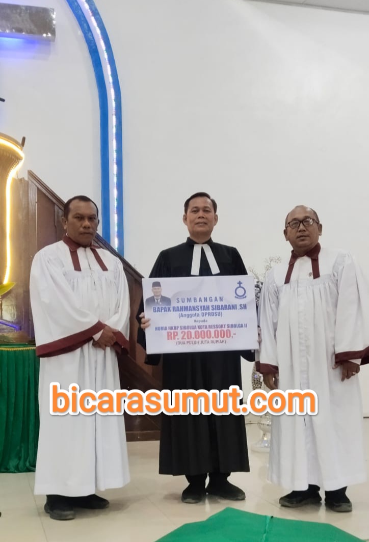 Gambar – Pendeta (Pdt) Halim Perdana Simbolon (tengah), Bendahara Huria St B Simanullang, SE (kiri) dan Ketua Dewan Koinonia HKBP Sibolga Kota, St Tigor P. Tambunan (kanan). SIBOLGA, bicarasumut...