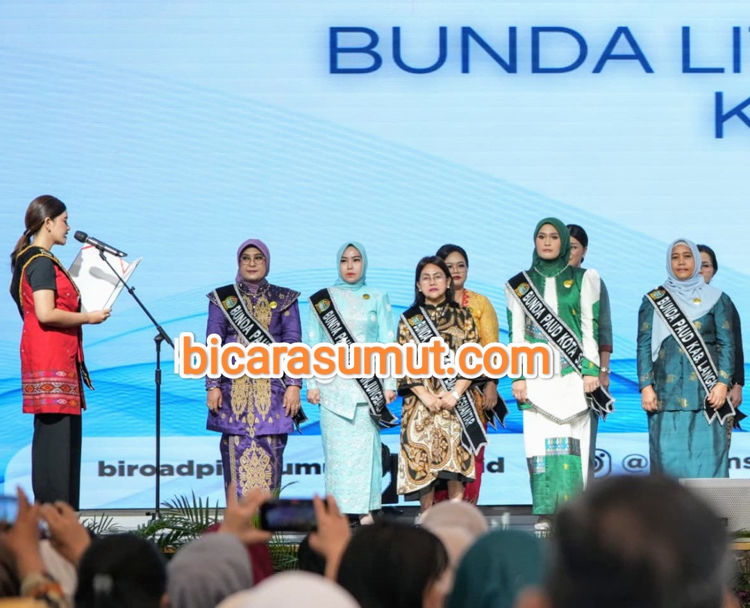 Gambar – Ny. dr. Rahma Syukri Penarik (baju hijau liris putih) saat dikukuhkan oleh Kahiyang di Aula Raja Inal Siregar. MEDAN, bicarasumut.com || Bunda Literasi dan Bunda PAUD Kota Sibolga masa ...