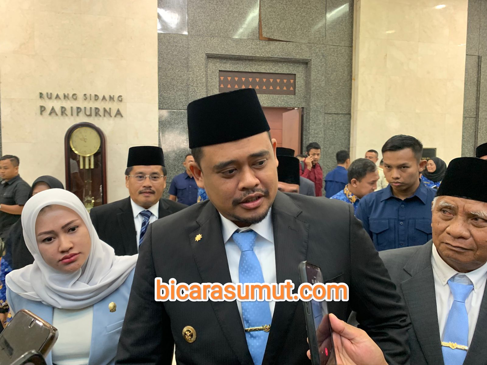 Gambar – Gubernur Sumut (tengah) didampingi Wakil Gubernur (kanan) dan Ketua DPRD Sumut (kiri) saat wawancara usai menghadiri rapat Paripurna di gedung DPRD Sumut. MEDAN, bicarasumut.com || Gube...