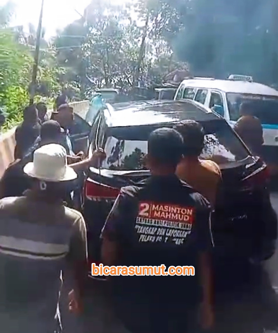 Gambar- Sekelompok orang yang menghadang mobil Bakhtiar dijalan Sibolga-Barus TAPTENG, bicarasumut.com | Sebuah aksi kriminal dialami oleh Bakhtiar Ahmad Sibarani, mantan Bupati Tapteng periode 2017-2...