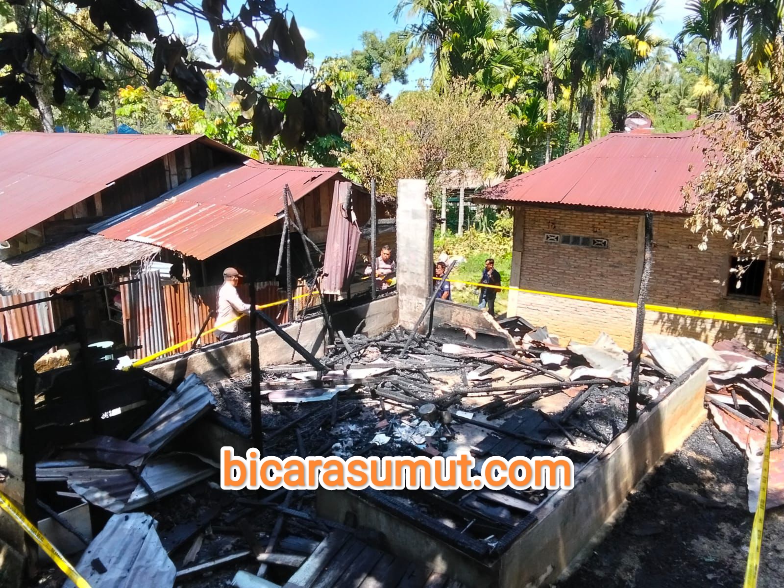Gambar – Personel Polsek Kolang bersama Tim INAFIS Polres Tapteng saat melakukan olah TKP atas peristiwa pembakaran satu unit rumah semi permanen. TAPTENG, bicarasumut.com || Personel Polsek Kol...