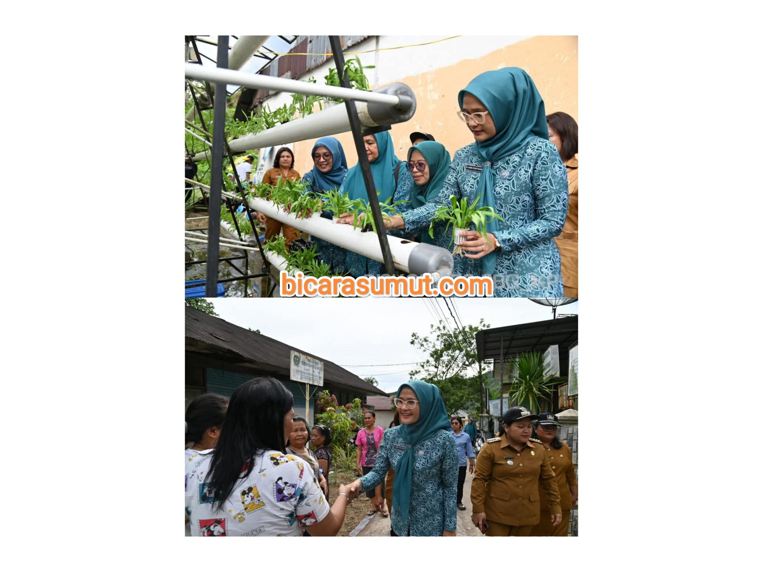 Gambar- Ketua TP-PKK Sibolga, Ny. dr. Rahma Syukri Penarik saat meninjau kebun percontohan pemanfaatan lahan pekarangan dan berdialog dengan anggota PKK setempat SIBOLGA, bicarasumut.com || Ketua Tim ...