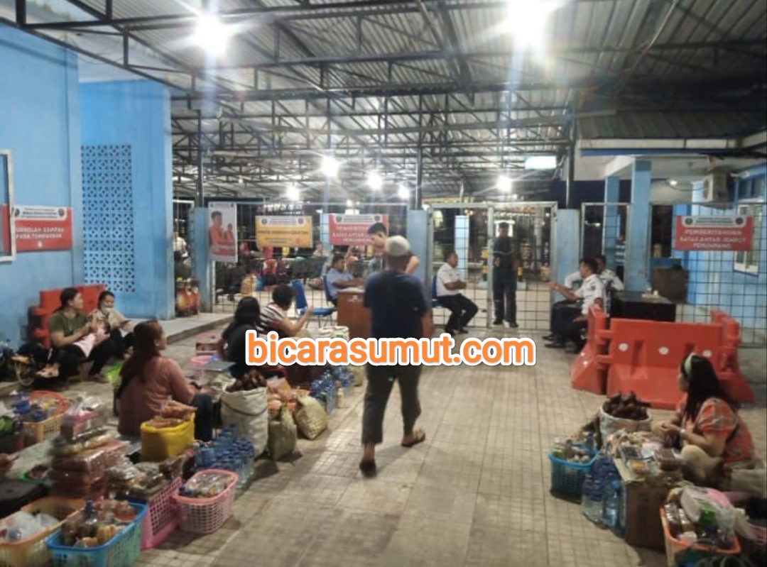 Gambar – Para pedagang yang berjualan didalam dekat pintu masuk ruang tunggu penumpang pelabuhan. SIBOLGA, bicarasumut.com || Kepala UPT Pelabuhan dan Penyeberangan Dinas Perhubungan Kota Sibolg...