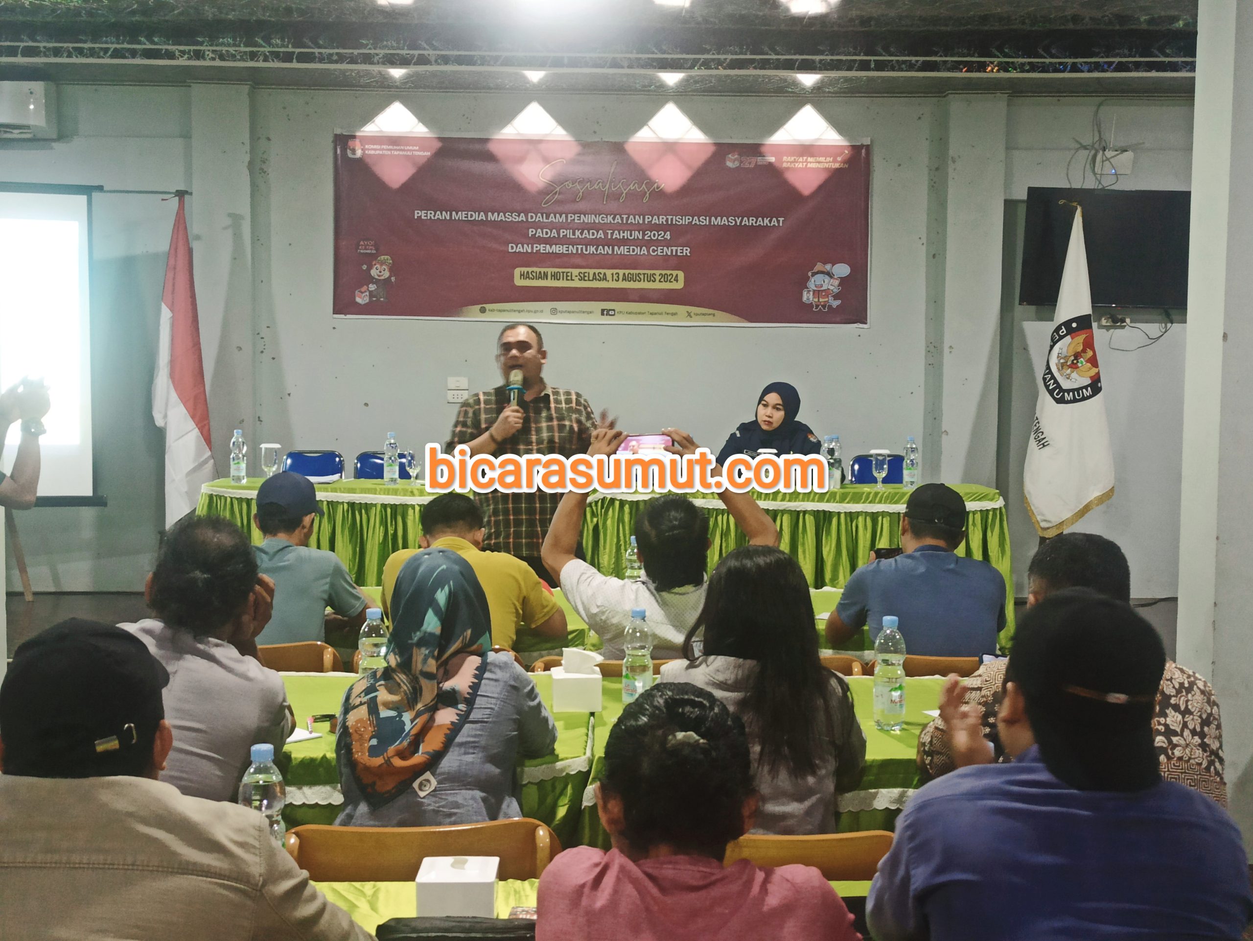Gambar – Komisioner KPU Tapteng saat menyampaikan sosialisasi kepada wartawan di hotel Hasian Pandan TAPTENG, bicarasumut.com | Komisi Pemilihan Umum (KPU) Kabupaten Tapanuli Tengah, Sumatera Ut...