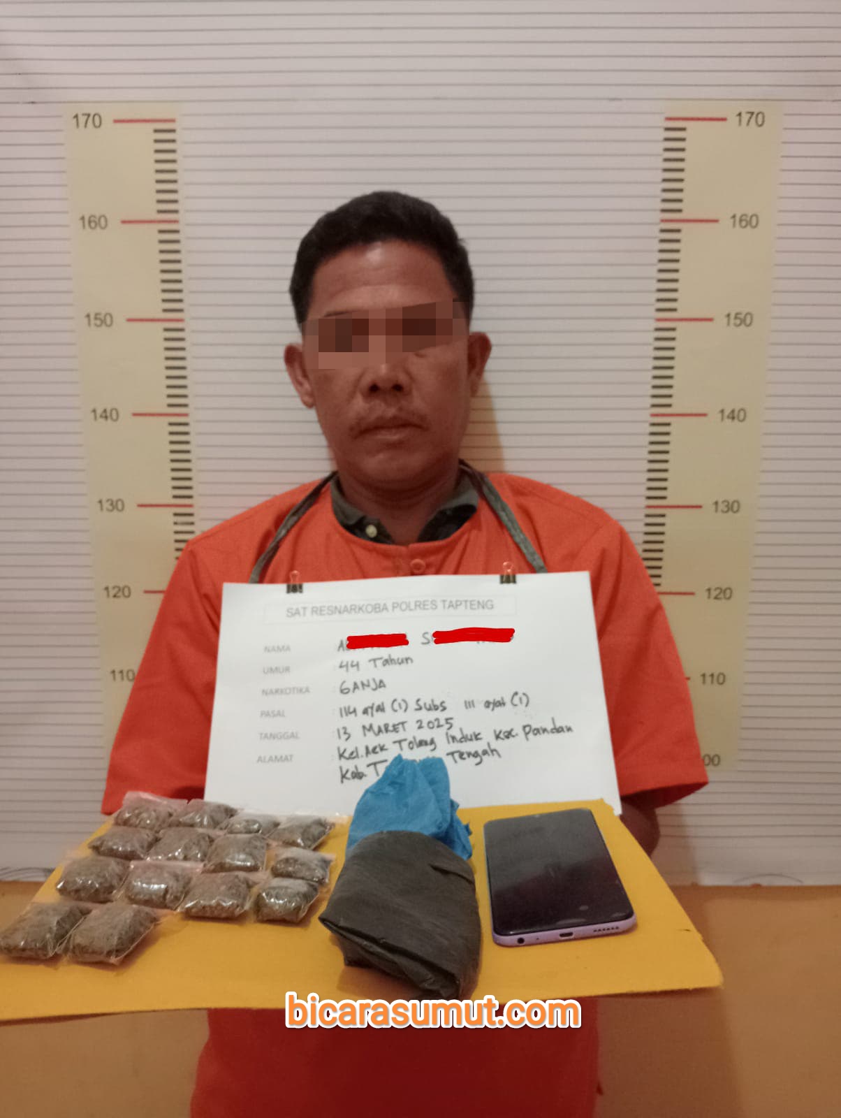 Gambar- Tersangka AS (44) saat diamankan bersama dengan barang bukti di Mapolres Tapteng. TAPTENG, bicarasumut.com | Tim Opsnal Sat Resnarkoba Polres Tapanuli Tengah berhasil mengamankan seorang pria ...