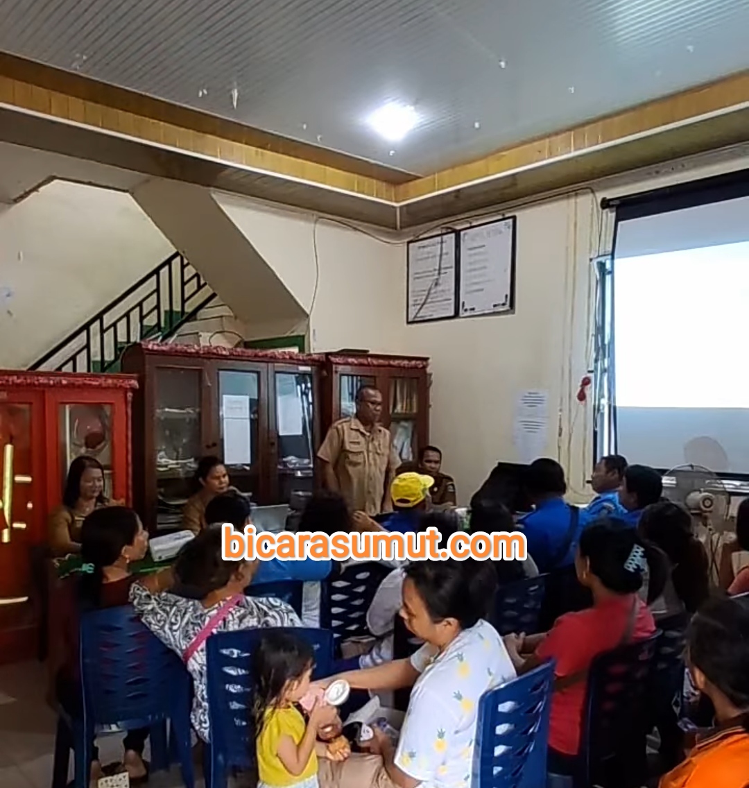 Gambar- Kepala Dinas PP & KB Sibolga, Richard M Pangaribuan (Berdiri) didampingi Lurah Angin Nauli Nelly Natalia Purba dan pegawai Kelurahan saat memberikan penyuluhan di kantor kelurahan Angin Nauli.