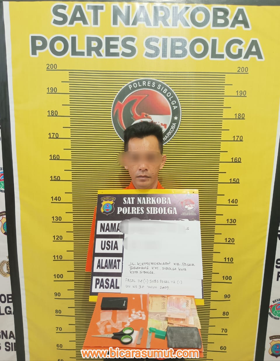 SIBOLGA, bicarasumut.com | Satuan Narkoba Polres Sibolga berhasil menangkap seorang pria diduga pengedar Sabu dari sebuah rumah di jalan Perintis Kemerdekaan, Kelurahan Pasar Belakang, Kecamatan Sibolga Kota, Kota Sibolga, Sumatera Utara, Jumat (3/5/2024) sekira pukul 2.30 WIB.