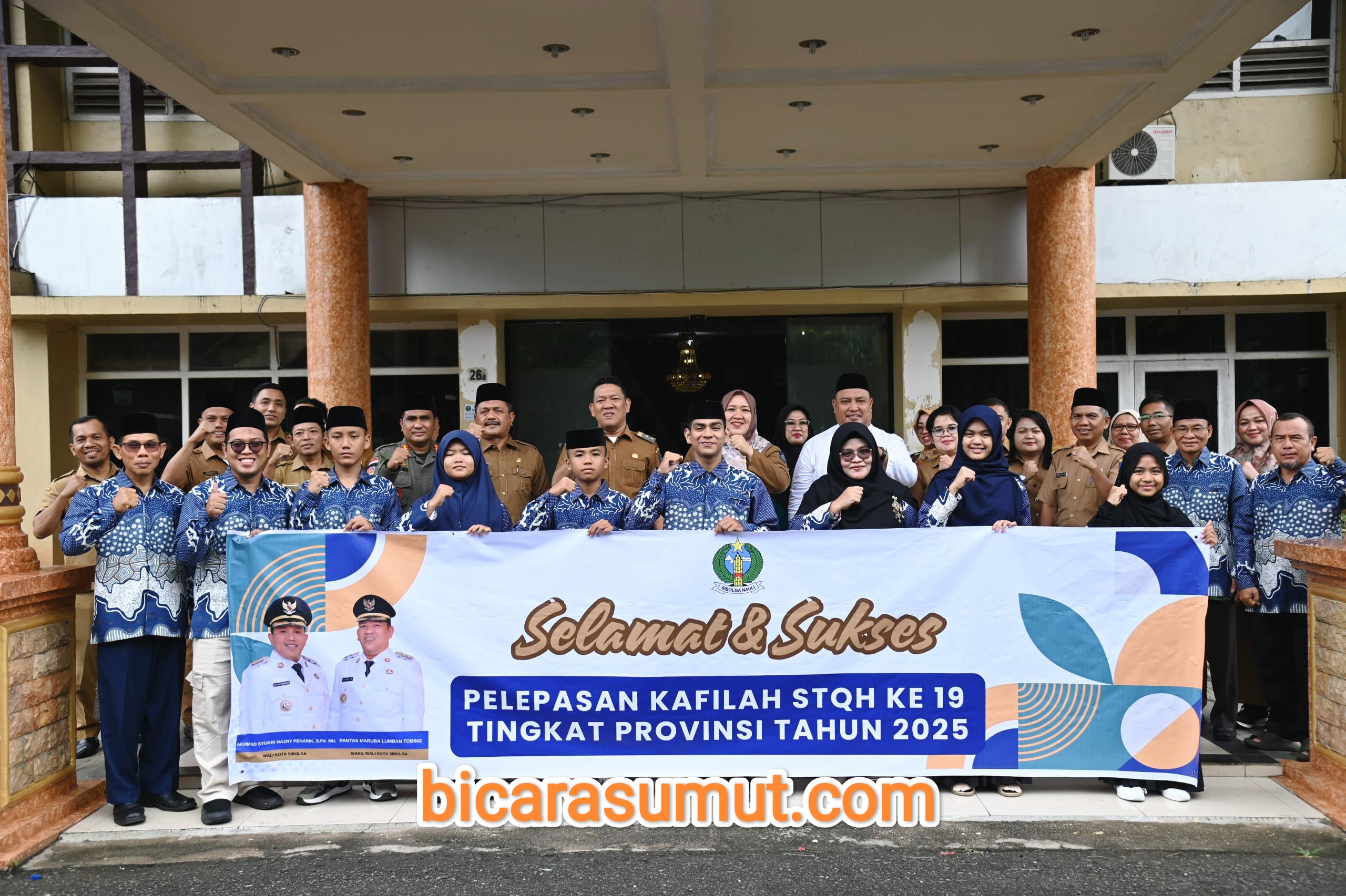 SIBOLGA, bicarasumut.com || Wakil Wali Kota Sibolga, Pantas Maruba Lumban Tobing bersama Plt. Sekretaris Daerah (Sekda) Pemerintah Kota Sibolga, Rosidah Lubis, melepas peserta Kafilah Seleksi Tilawatil Qur’an dan Hadist (STQH) Kota Sibolga yang akan bertanding di STQH tingkat Provinsi Sumatera Utara (Provsu) ke-19 tahun 2025.